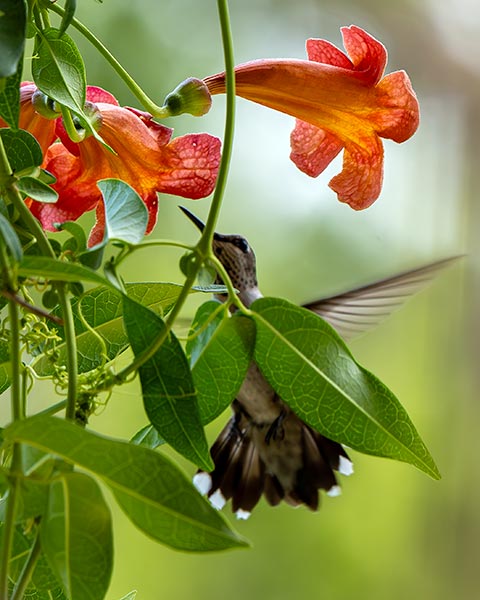 Humminbird feeding on Trumpet Vine flower